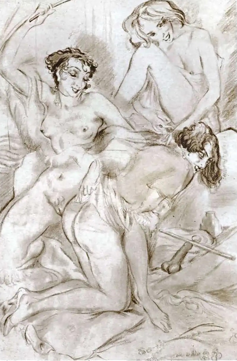I have deliberately chosen not to share the complete book illustrations from Nicolas Sternberg’s works. Instead, I carefully extract and present only those individual artworks that are directly related to BDSM themes, such as bondage, femdom, strapon play, power dynamics, sensual dominance and dark art.