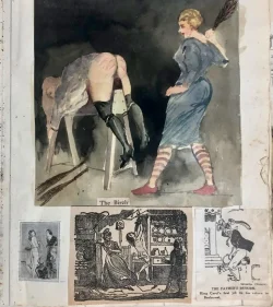 Imagine it’s 1920 and someone is quietly cutting, pasting, and collecting spanking scenes with great care into a personal scrapbook. What was once a very private collection came up for auction in 2019 and sold as a true collector’s item for $700.