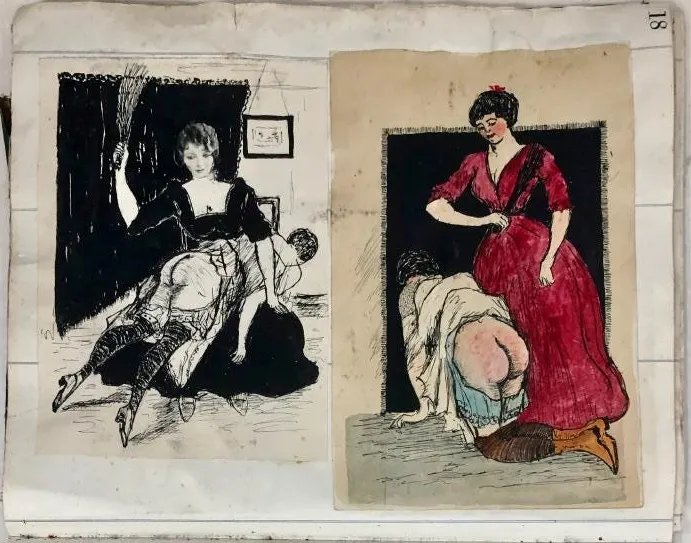 Imagine it’s 1920 and someone is quietly cutting, pasting, and collecting spanking scenes with great care into a personal scrapbook. What was once a very private collection came up for auction in 2019 and sold as a true collector’s item for $700.